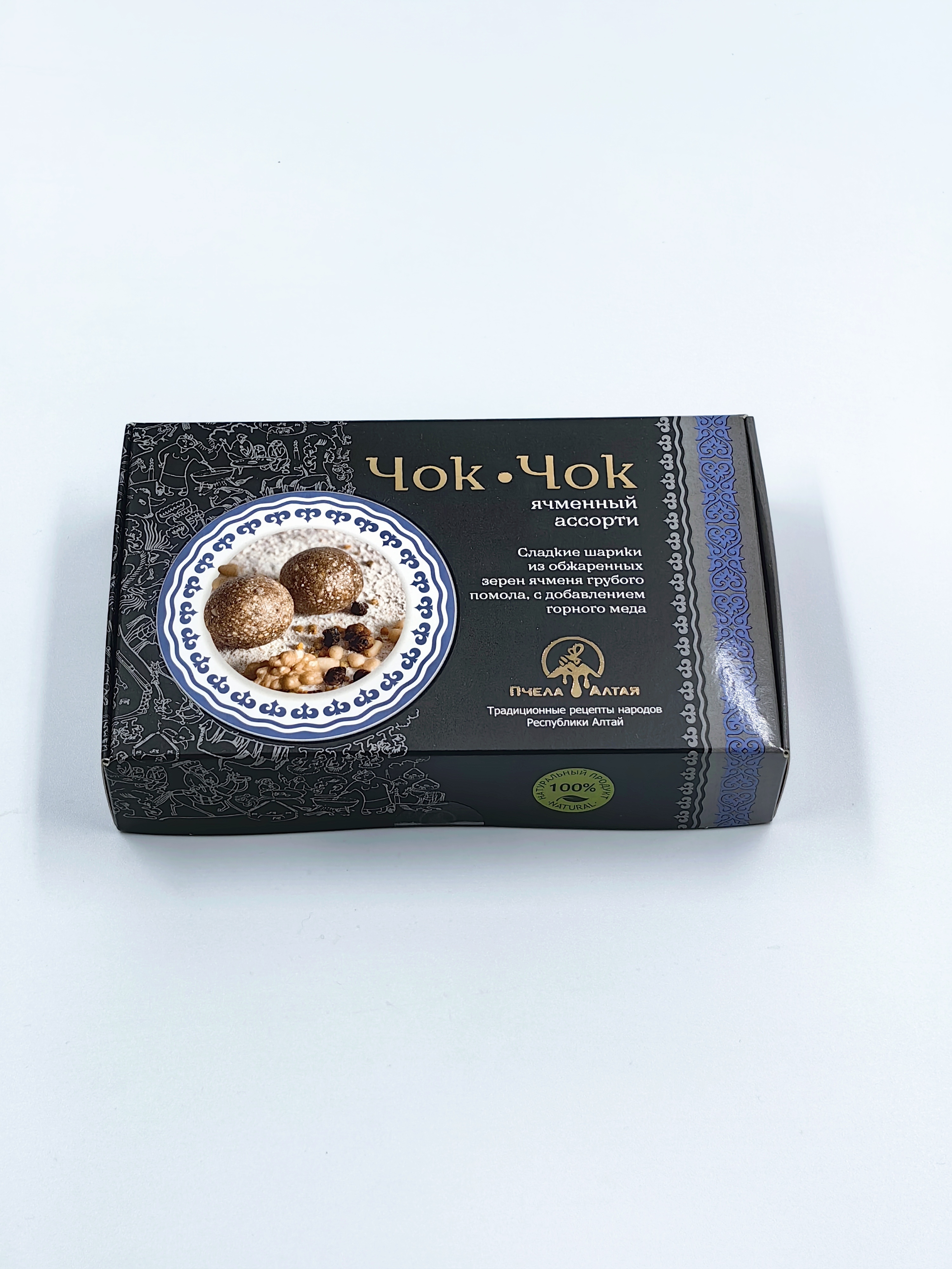Как и большинство алтайских блюд, десерт придумали кочевники и охотники много веков назад. Сладкие шарики из талкана (обжаренных зерен ячменя грубого помола), меда и орехов быстро насыщали и восстанавливали силы, поэтому их удобно было готовить впрок и брать с собой. Алтайцы гордятся своим десертом - с уважением чтут традиции предков. Чок - чок идеален для полезного перекуса, богат клетчаткой.